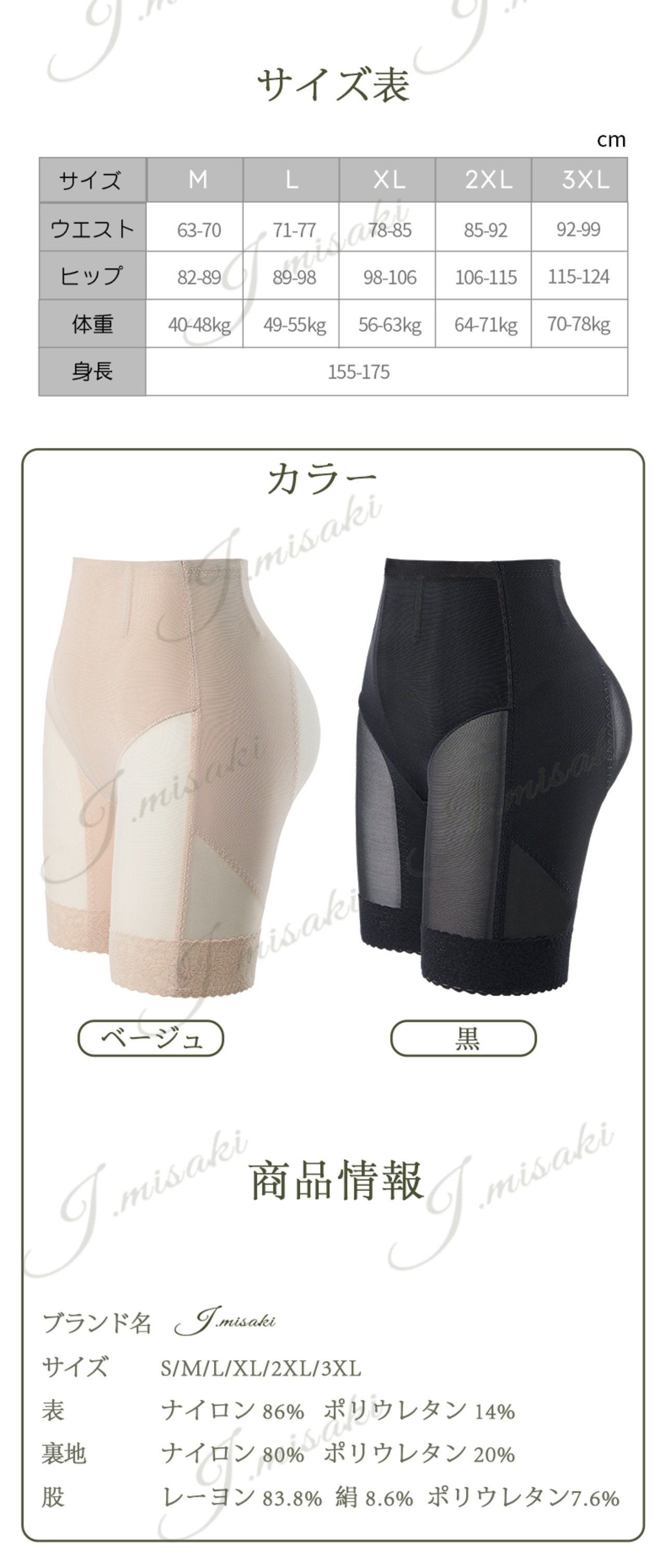 J.misakiヒップシェイパー 2着セット【ベージュ+ベージュ】骨盤ガードル 美尻形成 補正下着 ヒップアップ ぽっこりお腹 太ももの引き締め 蒸れない